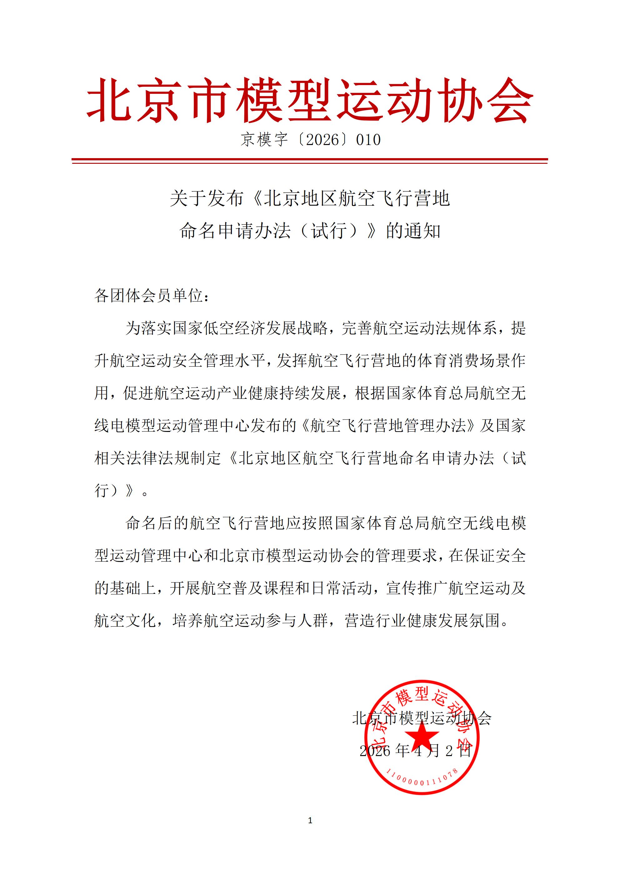 关于发布《北京地区航空飞行营地 命名申请办法(试行)》的通知